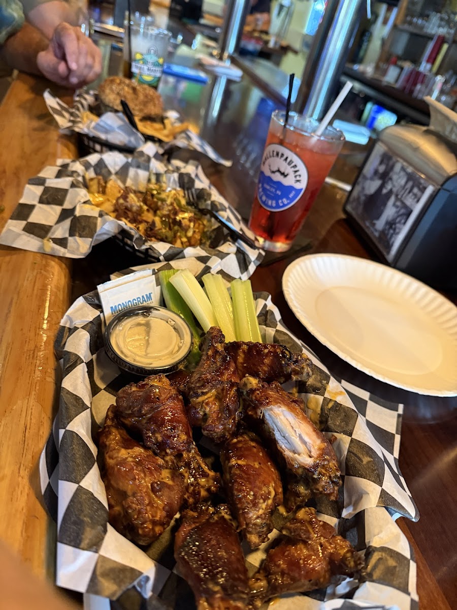 Bbqed Chicken Wings Local Draft Beer and Fish N' Chips